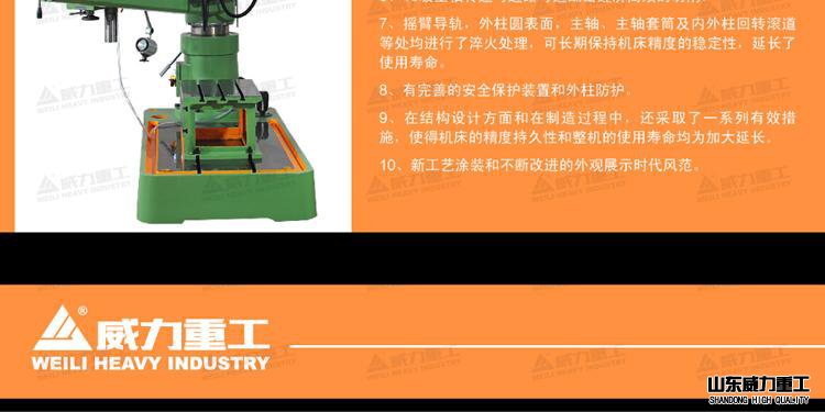 山東威力重工鄭重承諾:所售出的搖臂鉆床三包一年,終身維修!簽訂法律合同,敬請用戶放心購買!咨詢電話18606376696!